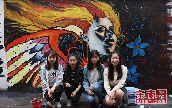 据闽南师大学生通讯社张永昌同学介绍,瑞京公寓小巷的涂鸦墙是学校第五届涂鸦比赛的成果。以往的涂鸦比赛一直只在纸上呈现展示,而这次的活动对外开放,希望能有更多的学生参与到其中来。