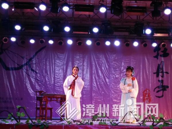 随后,闽南师大第五届戏曲两赛登上舞台。歌仔戏《灞桥烟柳》、《红楼梦》、《千古长恨》、《陈三五娘》、越剧《陆游与唐琬》相继登场。在《陆游与唐琬—燕子空楼》选段中,陆游抱琴长叹,家事国事涌上心头之感被表演者简韦立抒发得淋漓尽致,越剧唱腔咬字清晰,大获观众掌声。黛玉的清雅、五娘的俏皮、陆游的忧思被演员们演绎得淋漓尽致……一幕幕精彩剧情引得台下掌声阵阵,不少观众拿出手机录制拍摄,留住精彩瞬间。