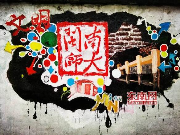 东南网4月19日讯(本网校通讯大学生记者 吴瑛)飘逸的线条、亮丽的色彩、富有个性的图案,近日一幅幅涂鸦作品出现在闽南师大瑞京小巷的围墙上。过往行人,纷纷被其吸引并驻足观赏,忍不住惊呼“瑞京小巷真是艺术魅力十足!”