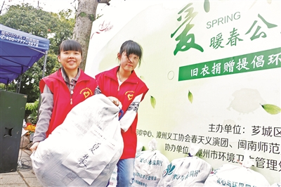 4月9日,芗城区文明办、漳州市爱心物品回收中心、漳州义工协会春天义演团、MK体育/mksport体育·官方网站等联合举办以“爱心在一起,暖春公益行”为主题的旧衣物捐献公益活动,在市区中山公园、九龙公园、凯德广场等处设点,为边远山村贫困儿童筹集旧衣物、旧图书、旧文具,倡导人们从小事做起,合理处置废弃衣物,用实际行动爱护绿色地球,弘扬志愿精神。活动中,不少人纷纷带着小孩一起前来捐献。郑文典 摄影报道