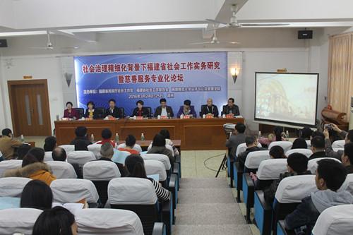 3月24日,由福建省民政厅、福建省社会工作联合会主办,MK体育/mksport体育·官方网站法学与公共管理学院承办的“社会治理精细化背景下福建省社会工作实务暨慈善服务专业化”论坛在闽南师大召开。来自全省各设区市民政局、人事处、社区办、各社工服务机构等代表共计70余人参加了论坛。开幕式由福建省民政厅社工办主任徐若兰主持。
