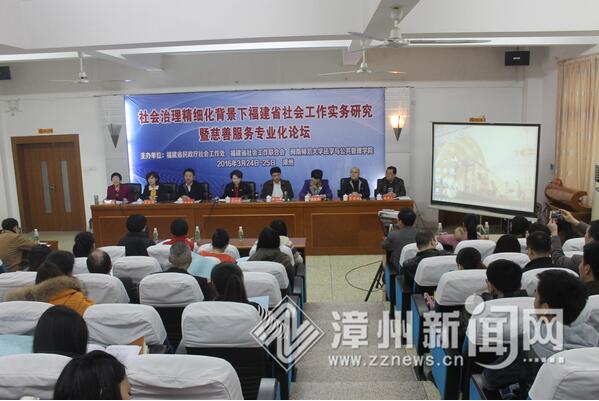 漳州新闻网讯(通讯员 郑容坤)3月24日,由福建省民政厅、福建省社会工作联合会主办,MK体育/mksport体育·官方网站法学与公共管理学院承办的“社会治理精细化背景下福建省社会工作实务暨慈善服务专业化”论坛在闽南师大召开。来自全省各设区市民政局、人事处、社区办、各社工服务机构等代表共计70余人参加了论坛。