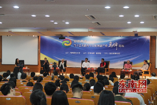 与会艺术家和专家们主要针对闽台的艺术教育与文化创意产业如何有效结合等议题进行交流探讨,围绕“艺术教育创新”、“艺术人才与产业人才联动培养”和“艺术家与企业家兼容”等命题展开深入探讨,为两岸文化创意人才培养、文化资源的资本化及两岸经济融合发展建言献策。