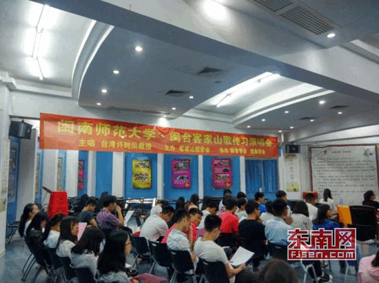 台湾许时烺教授和闽南师大退休教师许永忠老师对客家山歌进行了细致讲解,让同学们从中感受到了客家山歌文化蕴含的闽南风情和地域特色。据了解,客家山歌学会成立于2006年11月15日,为世界第一家大学生客家山歌社团。这也是闽南师大南音学会、客家学会、戏曲学会三个学会首次联办传习演唱会。