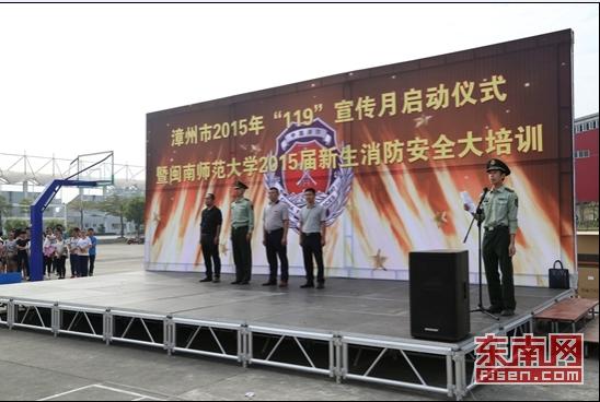 东南网漳州11月10日讯(通讯员 漳消宣 本网记者 王亚男)11月7日上午,漳州市2015年“119”宣传月启动仪式暨MK体育/mksport体育·官方网站2015级新生消防安全大培训活动在MK体育/mksport体育·官方网站篮球场隆重举行。