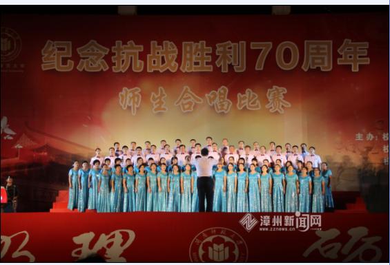 漳州新闻网讯(通讯员 林虹 林梅丽 陈钦梅 记者 李立平)10月17- 18日,由闽南师大党委宣传部、校团委、校工会联合主办的纪念中国人民抗日战争胜利暨世界反法西斯胜利70周年师生合唱比赛在西区田径场隆重举行,全校2000多名师生以合唱比赛为载体,唱响经典的红色旋律,用饱含深情的歌声重温抗战历史、缅怀革命先烈。