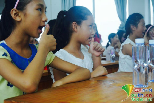 孩子们告诉志愿者,他们从小在爷爷、奶奶的照顾中长大,由于他们年迈,听力和理解力都有所下降,孩子们不知道该如何向爷爷、奶奶说出“爱”。有的孩子则是出于害羞,不敢向父母说出“我爱你”。于是,队员们灵机一动,将学过的手语教授给孩子们。通过这样一堂手语课,孩子们既学会了用手语向亲人表达自己的爱,也懂得了表达爱的方式有许多种。孝养父母、知恩图报,一言一行都可以成为爱的诠释。