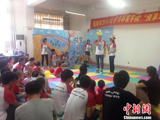 闽南师大化学与环境学院学生用讲演的方式为小朋友梦介绍红树林的知识。余丹摄