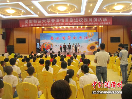本次活动由闽南师大法学与公共管理学院、长泰县人民检察院、漳州市人民检察院未检处、法治漳州研究中心、长泰县教育局联合举办。 整场普法情景剧由闽南师大法学与公共管理学院学生自编自导自演,共分《新包公现代审案》、《社会下的一角》、《金钱的诱惑》、《律政佳人》、《二胎风波》、《连心肉》六个剧目。