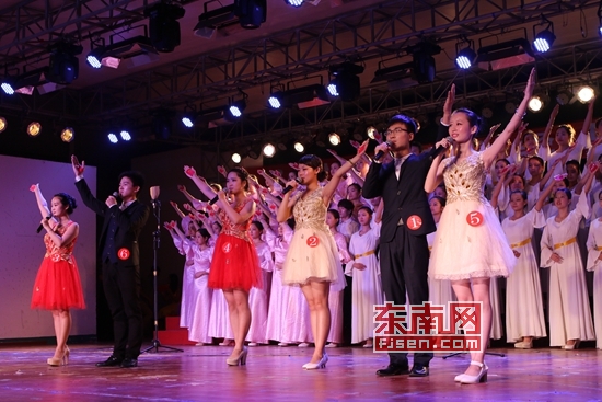 东南网漳州5月11日讯(本网记者 陈惠华 文/图)“起来!不愿做奴隶的人们!把我们的血肉筑成新的长城!”一声声热血的呼唤,一篇篇热情的朗诵,让人为之动容。5月10日晚,闽南师大龙文馆人声鼎沸,热闹非常。一场“纪念中国人民抗日战争暨反法西斯战争胜利70周年”千人经典诵读大赛在这里隆重举行。闽南师大13个学院组成13支参赛队伍共计一千名学生参加比赛。