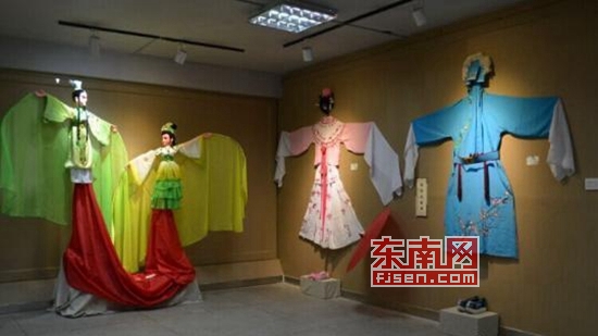 据介绍,本次展览以“践行核心价值观 弘扬闽台传统文化”为主题, 以“闽韵流馨、仙乡乐土、和谐欢歌”三个单元为主线,图文并茂地展示了闽南师大艺术学院在“闽台民间舞蹈”、“闽台歌仔戏”、“漳州锦歌”、“闽南木偶戏”、“闽南剪纸艺术”、“闽南民间美术”“闽南文化创意设计”等方面的系列特色教学成果。