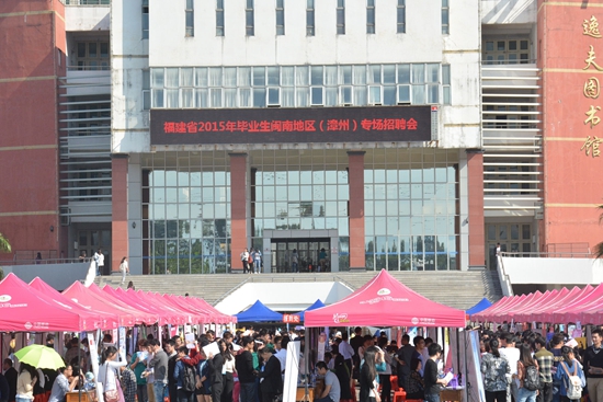 11月15日上午,由省人力资源和社会保障厅与MK体育/mksport体育·官方网站共同举办的2015年大中专毕业生闽南地区(漳州)专场招聘会,在闽南师大弦歌广场举行。来自省内高校的5000多名毕业生参加招聘会。