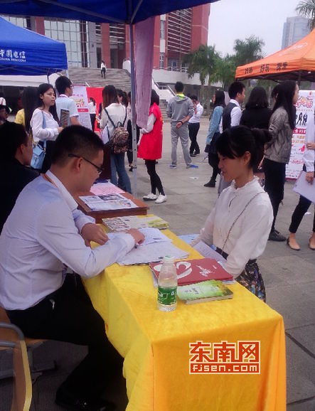 东南网11月9日讯(大学生通讯员 林文芳)8日上午,闽南师大弦歌广场人头攒动。原来,是闽南师大秋季大型校园招聘会的活动现场。本次招聘会吸引了142家企业的参与,提供网络技术工程师、平面设计师、营销经理、会计员等近千个就业岗位。