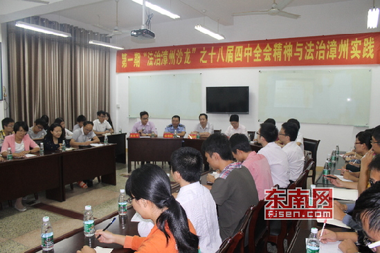 据悉,本次沙龙旨在通过座谈会的形式让学生们更好地践行十八届四中全会精神与法治漳州实践,更好地领会全会审议通过的《中共中央关于全面推进依法治国若干重大问题的决定》、《全体会议公报》精神,贯彻落实全会聚焦法治建设、推动司法改革的精髓。