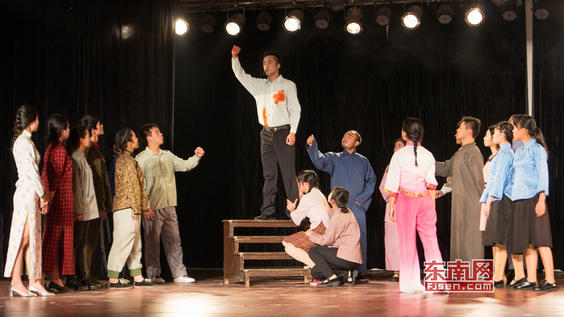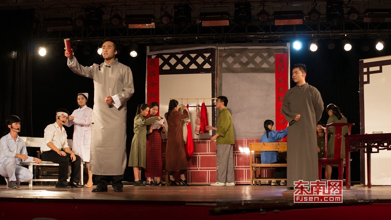 东南网漳州11月10日讯(见习记者 郭钰婷)“反对低级趣味的文艺,提出合于现代的戏剧。”恰逢芗潮剧社成立80周年之际,9日晚上,一出名为《芗潮》的大型话剧在闽南师大龙文馆精彩上演,芗涛剧社总顾问邱煜昆、团委副书记郑炎山应邀出席本次活动。