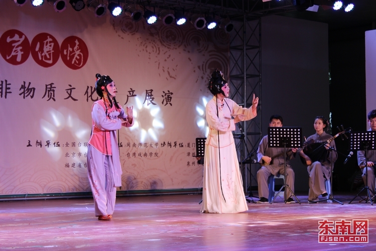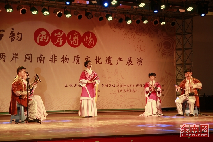 东南网9月23日讯(本网校通社大学生见习记者 黄舒婷 通讯员 陈小环)9月22日下午,“闽南古韵、两岸传情”海峡两岸闽南非物质文化遗产展演在闽南师大龙文馆举行,来自海峡两岸的传统艺术家欢聚一堂,倾情演绎闽南传统艺术之美。这也是海峡两岸闽南传统文化艺术家的首次联袂合作。