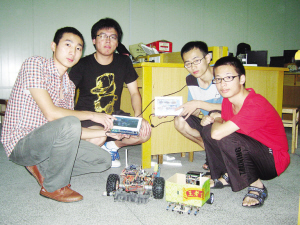 能在全国大赛上获奖,离不开团队成员的密切配合。四个哥们先是一同系统地学习无线通讯方面的知识,而后分工设计:有人负责做系统,有人负责对系统进行完善,有人负责网络连接,有人负责智能车方面的设计制作,而指导老师进行统筹协调。