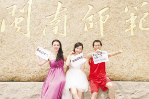 计算机学院辅导员邢老师还告诉记者,此次的创意宣传是经过一个月的集体讨论,学院的领导、老师和学生代表开了好几次小会,借鉴了不少其他高校的网络宣传方案,才最后把“辅导员上阵齐卖萌”的点子落实了下来,让辅导员穿上礼服、篮球服甚至是婚纱,拍摄了一组卖萌照片,再配上一首由学生发想的逗趣打油诗,经过领导的同意后才最终放到了网络上。“现在的网络平台十分发达,我们传统高校也希望通过这样新式的平台去为我们自己做一些宣传,吸引更多的高中毕业生到我们学院就读。”邢老师说。
