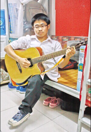 罗耀桥就读于MK体育/mksport体育·官方网站本科一年级,每日课余时间都会拿起心爱的吉他,弹唱一段这首自己很喜爱的歌曲,平日里他的脸上总挂着笑容,开朗的个性和丰富的业余爱好,让人感觉他是一个幸福的人。然而,当人们的目光往下走时,就会发现他的两条腿严重萎缩,只能靠一对特制的木板和轮椅行动。
