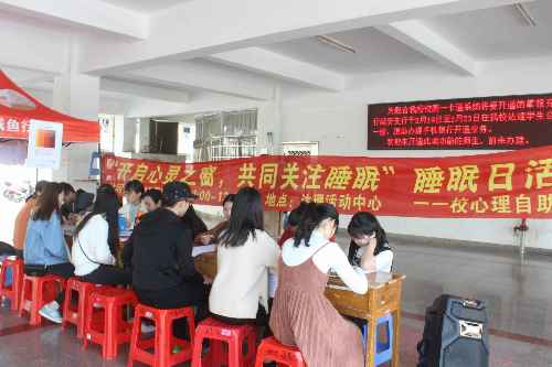 随后,该活动又通过心理调查问卷的形式向参与活动的同学们进行了健康睡眠、心理健康问题等相关知识的普及。活动现场气氛热烈,不少同学都前来咨询相关信息,与老师同学们就睡眠等问题进行探讨。