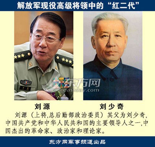 现任总后勤部政委刘源1951年生于北京,原籍湖南宁乡,他是刘少奇之子。他还有一个称号是“反腐先锋”,他也是38位上将中,少有的由政入军的几人之一。
