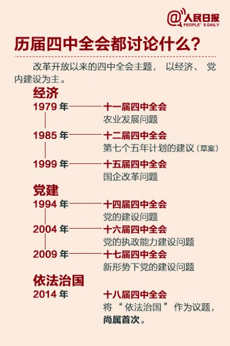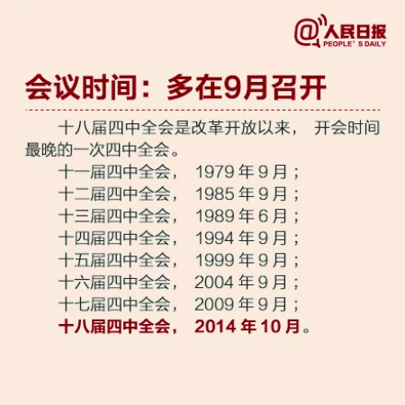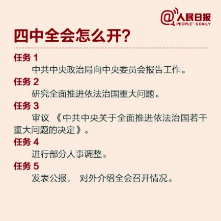 20日,十八届四中全会将在北京召开。现在问题来了:“四中全会”讨论什么?依法治国首次成全会主题,传递什么政治信号?……能从全会中看出门道是大本事!9张图,教你看懂四中全会,一起学习!