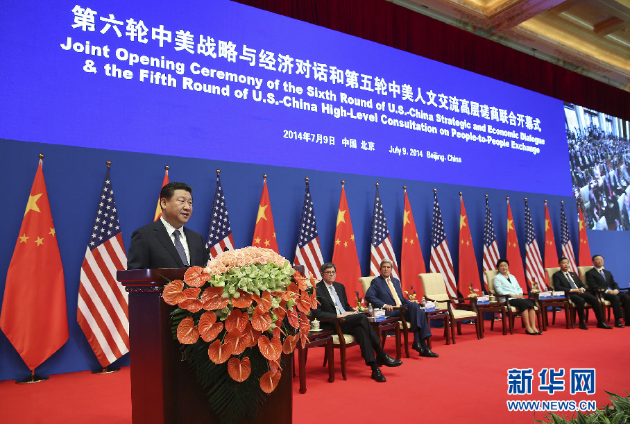 7月9日,第六轮中美战略与经济对话和第五轮中美人文交流高层磋商联合开幕式在北京举行。国家主席习近平出席开幕式并致辞。新华社记者庞兴雷摄