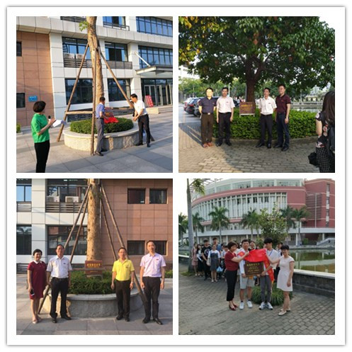 首批校园景观认养认捐树木共有15棵,分别位于科技信息楼正门东西两侧的两棵香樟树,科技信息楼东南方的一棵重阳木和逸夫图书馆东侧的12棵桂花树。首批校园景观认养认捐树木分别由学校领导班子,党(校)办、党委组织部、宣传部、学工部、人事处、国资处、教务处、财务处、团委等部门领导以及数统学院行政人员共同捐款认养。吴彬镪、李顺兴、钟发亮、蒋一婷以及首批校园景观树木认养认捐单位为所认养树木揭牌。