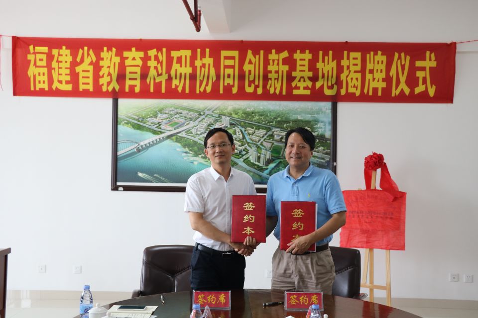 随后,李顺兴和吴明洪代表双方签署了《合作建立“福建省教育科研协同创新基地”协议书》,并共同为“福建省教育科研协同创新基地”揭牌。