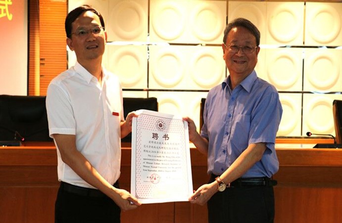 校长李顺兴向汪毅夫教授颁发聘书