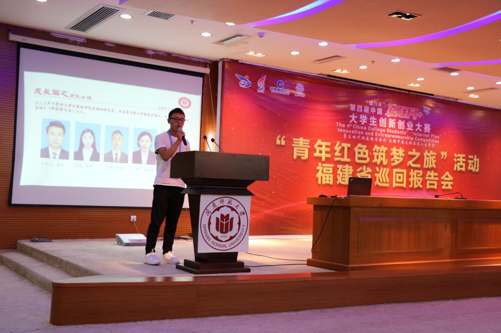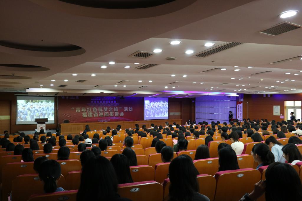 10月17日上午,“青年红色筑梦之旅”活动福建省巡回报告会在登录入口逸夫图书馆五楼报告厅举行。报告会邀请了全国8所高校的8支优秀大学生“青年红色筑梦之旅”项目团队,分享他们在青年红色筑梦之旅中的成长与感悟。