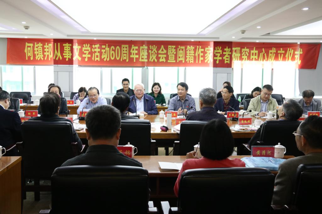 据悉,何镇邦是漳州云霄人,是我国当代文坛重要的理论家、批评家,也是当代闽籍作家的杰出代表,参与评论、创作等文学活动长达六十年之久,是当代闽派文论的重要开拓者与奠基人,著有《长篇小说的奥秘》《当代小说艺术流变》《文学的潮汐》等文学评论集以及《笔墨春秋》《文化屐痕》等散文随笔集,主编《当代名家随笔丛书》《中国当代女人作家权威世界散文丛书》等大型书系。本次座谈会的召开,将有助于促进闽派批评的交流与创新,有助于对何镇邦先生的创作与理论进行拓展性的研究。