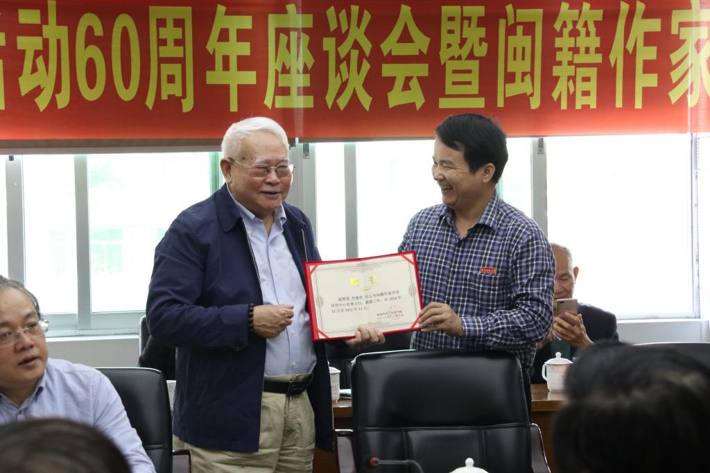 副校长张龙海为何镇邦颁发闽籍作家学者研究中心名誉主任聘书