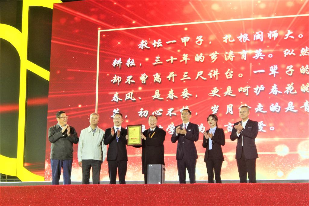 气势恢宏的暖场节目金鼓迎宾《欢腾盛世》正式拉开了晚会的序幕。大型歌舞《六十载 闽师情》深情演绎了登录入口师生60年来风雨兼程、一路高歌的芳华岁月。在创业篇——峥嵘六秩中,音·诗·画《那时花开,我是闽师人》展现了一代代闽师人上下求索,“艰苦奋斗、自强不息、攻坚克难、敢拼会赢”的精神。第三个节目是晚会的特殊环节,退休20多年却始终坚守在教学第一线的邱煜焜老师在学生们的簇拥下上台,在学生们的真情回忆中,他分享了自己在闽南师大从教四十年的感受和体会,真诚质朴的讲话感人至深。校长李顺兴教授代表学校为邱煜焜老师颁发了MK体育/mksport体育·官方网站特别荣誉奖,现场掌声久久不息。舞蹈《从这里出发》带领观众一起走进登录入口实习教师与学生们的真情故事,展示出登录入口支教学生用爱心播撒希望阳光,为乡村振兴助力的青春风貌。发展篇——奋进闽师再现了登录入口六十载风雨兼程,从拓植固本到叶茂花繁的耕耘岁月。舞蹈《花开的时节》以毕业季为背景,表现了闽师人荣校报国的使命情怀。活力四射的校园街舞《我的舞台》展现了登录入口学子“爱拼才会赢”的拼搏精神。闽南歌舞表演《新锦歌——生命的颜色》诉说着生命的美好乐章,彰显出生命的韵律。在展望篇——再谱华章中,少数民族校友们带来了极具异域风情的民族舞蹈联欢《和谐家园》。全球各地的校友纷纷发来祝福视频,用自己的方式献上对母校的祝福。各届校友代表带来校友歌曲联唱,优美的歌声,更加勾起每个人心底最难忘的闽师时光。“华之东,闽之南,浩浩弦歌传......”最后晚会在全场齐唱《MK体育/mksport体育·官方网站校歌》的嘹亮歌声中落下帷幕。
