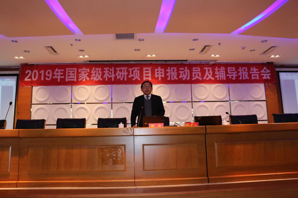 1月10日下午,登录入口在逸夫图书馆五楼报告厅召开2019年国家级科研项目申报动员及辅导报告会。全体在家校领导,全校中层干部,全体教授、博士、副教授,科技处所有人员参加会议。会议由党委常委、副校长张龙海主持。