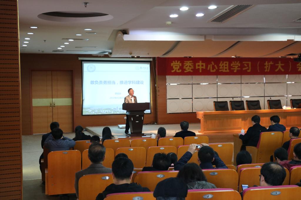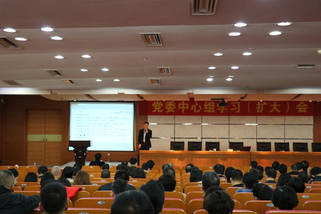 为进一步深入贯彻习近平新时代中国特色社会主义思想和党的十九大精神,全面贯彻落实全国教育大会精神和新时代全国高等学校本科教育工作会议精神,2月22日上午,校党委在逸夫图书馆五楼报告厅召开理论学习中心组(扩大)学习会。全体在家校领导,全校副科级以上干部,二级学院教授、院长助理、系主任、教研室主任,民主党派、无党派人士及统战团体负责人,各级人大代表、政协委员等近400人参加会议。会议由校党委常委、副校长张龙海主持。