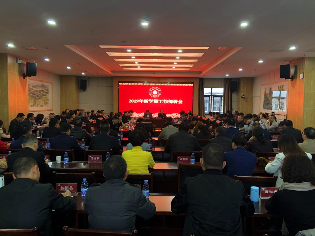 校党委书记吴彬镪作了题为《奋力攻坚强内涵 勇于担当抓落实》的讲话,从五个方面对新学期工作提出了具体要求:一是要提高站位抓落实。要进一步学习贯彻落实好习近平新时代中国特色社会主义思想,要不折不扣贯彻落实好中央和省委决策部署,围绕服务学校全局发展抓落实,推动学校重大重点工作攻坚突破;二是要盯紧目标抓落实。在强化办学特色、补齐硬件短板、冲刺申报博士学位授予单位等方面狠下功夫,狠抓落实;三是要突出重点抓落实。要强化党建引领,实施内涵攻坚,提升管理绩效,竭尽全力推进学校重大目标、重大举措和重大任务的落实。四是要提升本领抓落实。要提升学习研究能力,提升统筹协调能力,提升攻坚克难能力,强化能力建设,锤炼抓落实的过硬本领,提升抓落实的水平。五是要完善制度抓落实。要以常态化督查促进抓落实,以崇尚实干的用人导向激励抓落实,以严格追责问责倒逼抓落实。吴彬镪强调,2019年是新中国成立70周年,也是全面落实MK体育/mksport体育·官方网站第一次党代会精神、奋力冲刺博士学位授予权单位的关键之年、攻坚之年。希望同志们进一步增强责任意识、大局意识、危机意识和进取意识,站位全局、勇于担当、狠抓落实、奋力攻坚,以高度负责、时不我待、只争朝夕的精神加快推进学校重点工作取得新突破,共同开创新闽师建设的新篇章,以优异成绩庆祝新中国成立70周年。