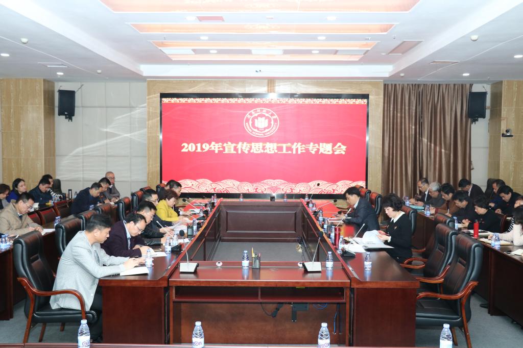 校党委副书记钟发亮在会上讲话。钟发亮强调,做好新形势下宣传思想工作要坚持稳中求进总基调,守正创新,自觉承担起举旗帜、聚民心、育新人、兴文化、展形象的使命任务;统战工作贵在引领、重在服务、要在成效,要做好党外人士的凝心聚力工作,不断完善协商机制,引导党外知识分子建功立业,服务社会。各单位要深刻认识做好学校党建与思想政治工作的重要性,重点抓好以下几项工作:一要把坚持政治标准贯穿始终。社会主义大学要坚持社会主义办学方向,各项工作必须围绕立德树人根本任务,把培养社会主义合格建设者和接班人、培养担当民族复兴大任的时代新人作为重要职责。二要把狠抓工作落实贯穿始终。2019年是学校的工作落实年,各单位要根据新学期工作部署会上提出勇于担当抓落实的“五点要求”,将2019年部署的各项工作真正落实到位。三要把聚焦聚力重点工作贯穿始终。党建和组织工作今年重点做好制度建设和支部对标提升、“牢记初心,不忘使命”主题教育、召开全校党建工作会议;学生工作重点完善“十大育人”体系、开好“三全育人”推进会、抓好学风建设、探讨精准思政和新时代劳动教育问题、团委围绕五四运动100周年开展活动;招生就业重点围绕提升生源质量、优化专业布局开展工作;安全稳定工作重点围绕“五个不出”的目标做好政治安全、治安安全、消防安全工作。四要把研究工作、创新方法、培育品牌贯穿始终。各单位要主动谋划,创造性开展工作,培育品牌,同时注重宣传效果。五要把提升素质、锻炼队伍贯穿始终。全校干部要认真学习习近平总书记在中央党校中青年干部培训班开班式上的重要讲话精神,不断加强理论学习,提升理论修养。