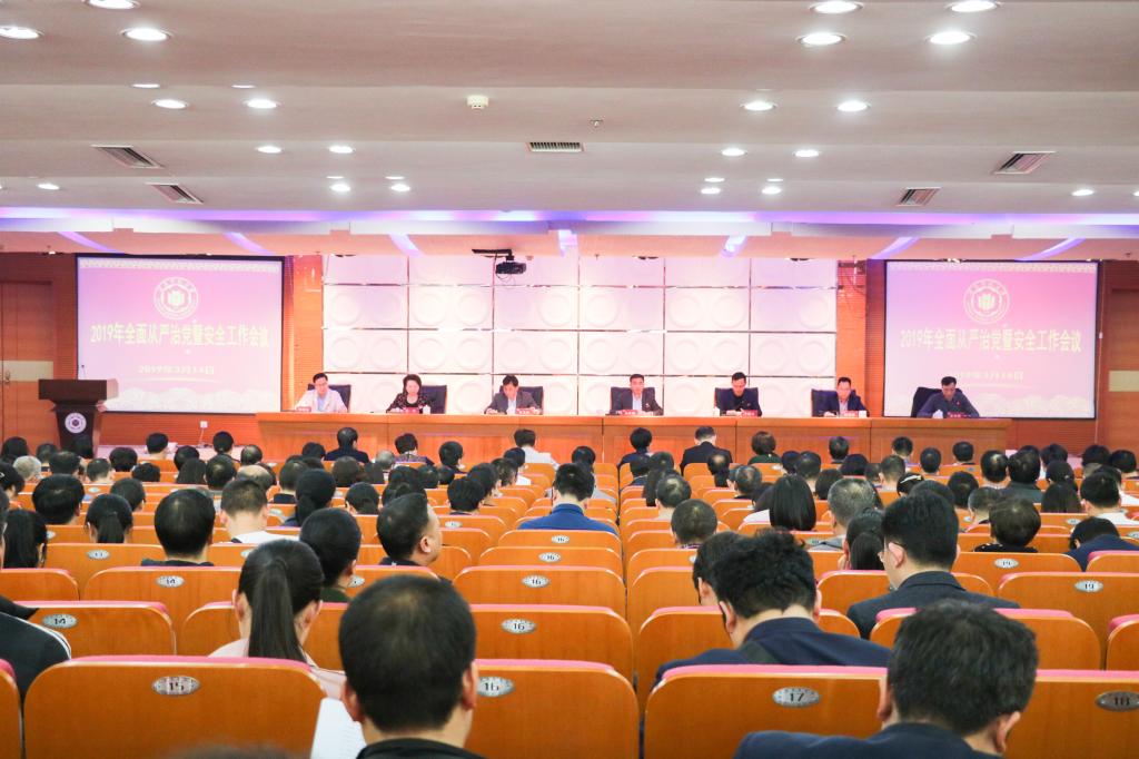 3月14日下午,登录入口在逸夫图书馆五楼报告厅召开2019年全面从严治党暨安全稳定工作会议。全体在家校领导出席会议。会议由校长李顺兴主持。