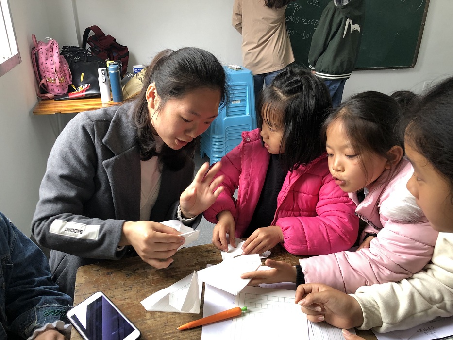 开班仪式后,登录入口志愿者将学生按年级分组,为他们讲授了折纸、国学、武术等课程,最后进行一对一的作业辅导,圆满完成了第一期的各项教学安排。