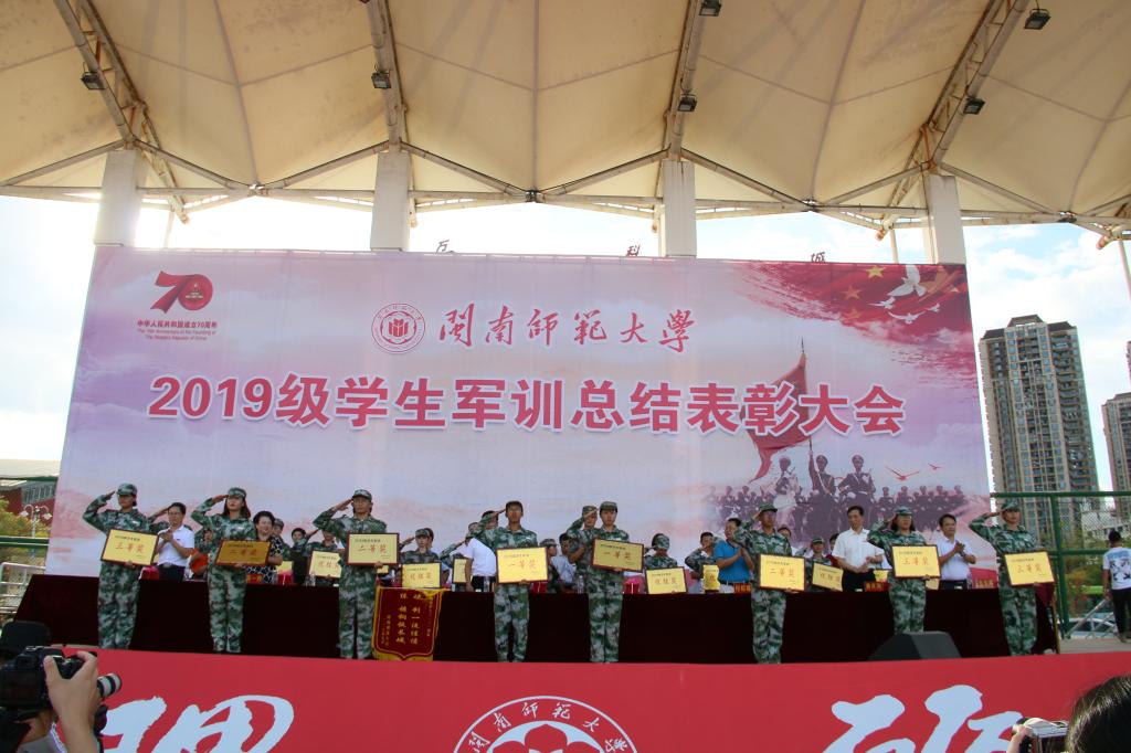 随后,校教务处处长翁文宣读表彰决定。部队和学校领导共同为获奖的24个军训先进班集体、5个军训宣传先进单位、208名训练标兵颁发奖牌和荣誉证书。校党委书记吴彬镪代表学校向承训部队赠送锦旗。