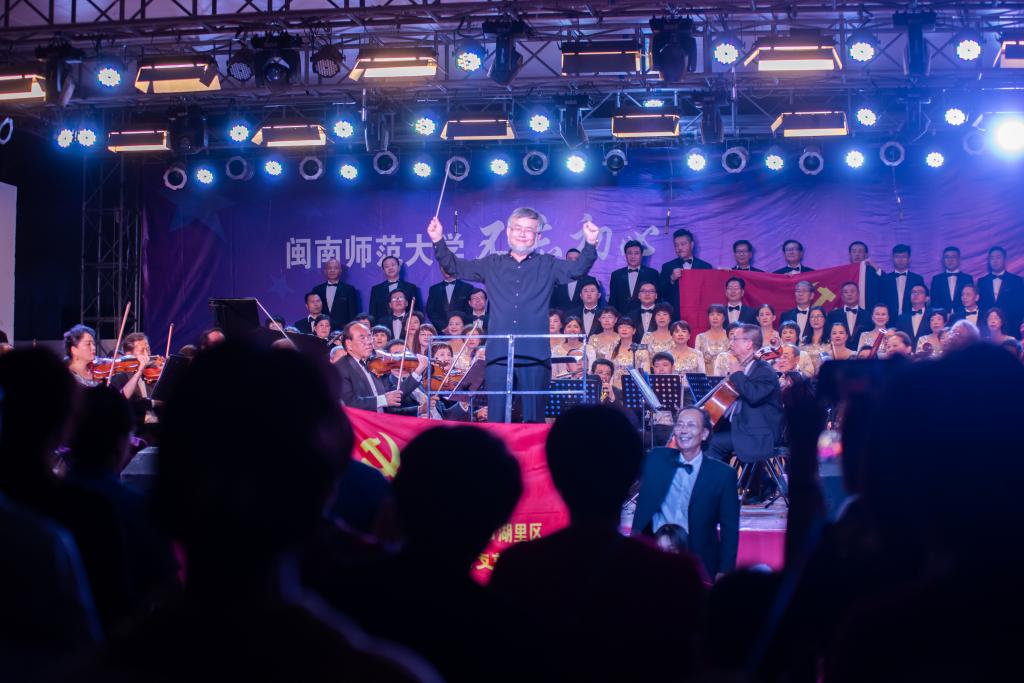 当晚,龙文馆内座无虚席。厦门市仙岳山艺术团管弦乐队在指挥叶建中的执棒下,演奏了一曲曲古今中外的经典名曲。开场《红旗颂》以小号为引子,经过圆号反复,弦乐声部奏出大气磅礴的乐章,用豪迈的进行曲表现了中国人民在红旗的指引下不畏险阻、奋勇直前的精神风貌。由经典红歌改编而成的《山丹丹花开红艳艳》曲调明亮,气势磅礴,《我和我的祖国》用优美动人的旋律向祖国深情告白,《康康舞曲》则通过欢快激昂的音调将全场气氛推向高潮,现场掌声经久不息。