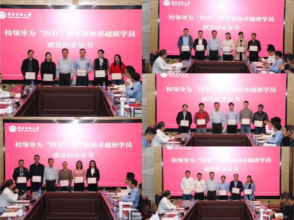 教师工作处负责人宣读了第一期“四有”青年教师卓越班结业名单及先进标兵名单。肖庆伟为学员颁发结业证书,吴彬镪为“四有”青年教师“先进标兵”颁发荣誉证书。