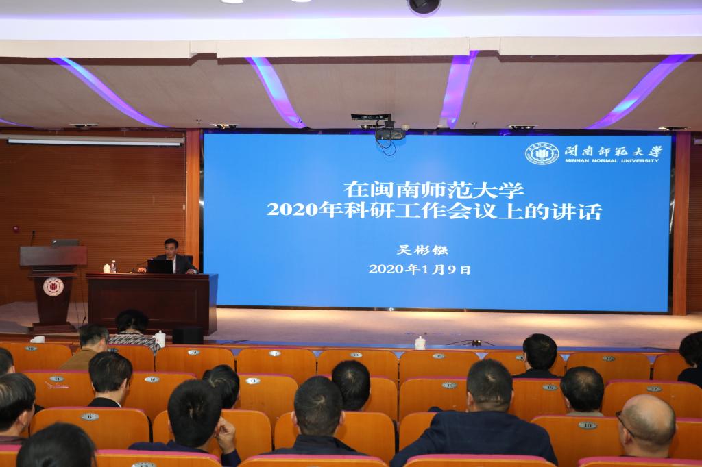 校党委书记吴彬镪在总结讲话中指出,过去一年,在全校广大教师和科研管理工作者的共同努力下,学校科研工作获得了长足发展,交出了靓丽的成绩单。在肯定成绩的同时,要保持清醒认识,认真总结工作规律。吴彬镪强调,当前学校正处于综合改革的攻坚期、发展方式的转型期,也是申请博士学位授予单位的关键期,机遇和挑战并存。全校要坚定信心、积极面对,吸取兄弟院校科研工作的成功经验,充分挖掘自身特色和优势,在抢抓机遇中应对困难挑战,不断推动学校科研创新实力取得新提升。吴彬镪指出,2020年学校科研工作的总体思路和目标是纵向提质、横向增量,争取在高层次科研项目、科研成果、科研平台申报、横向合作等方面取得新突破,全面提升登录入口科研创新综合实力。做好2020年科研工作,要紧紧围绕推进“双一流”建设和高水平师范大学的奋斗目标,突出人才支撑、强化项目带动、注重平台引领、积极服务社会、改革完善机制,推动学校科研创新水平再上新台阶。