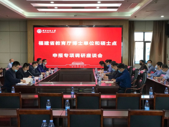 省教育厅发展规划处、高教处、科技处等部门负责人分别对登录入口申报博士学位授予单位和申报新增硕士点工作进行指导和探讨。学校学科建设与研究生工作处、人事处、科研处、财务处等部门负责人以及各二级学院院长、闽南文化研究院负责人参加座谈会。