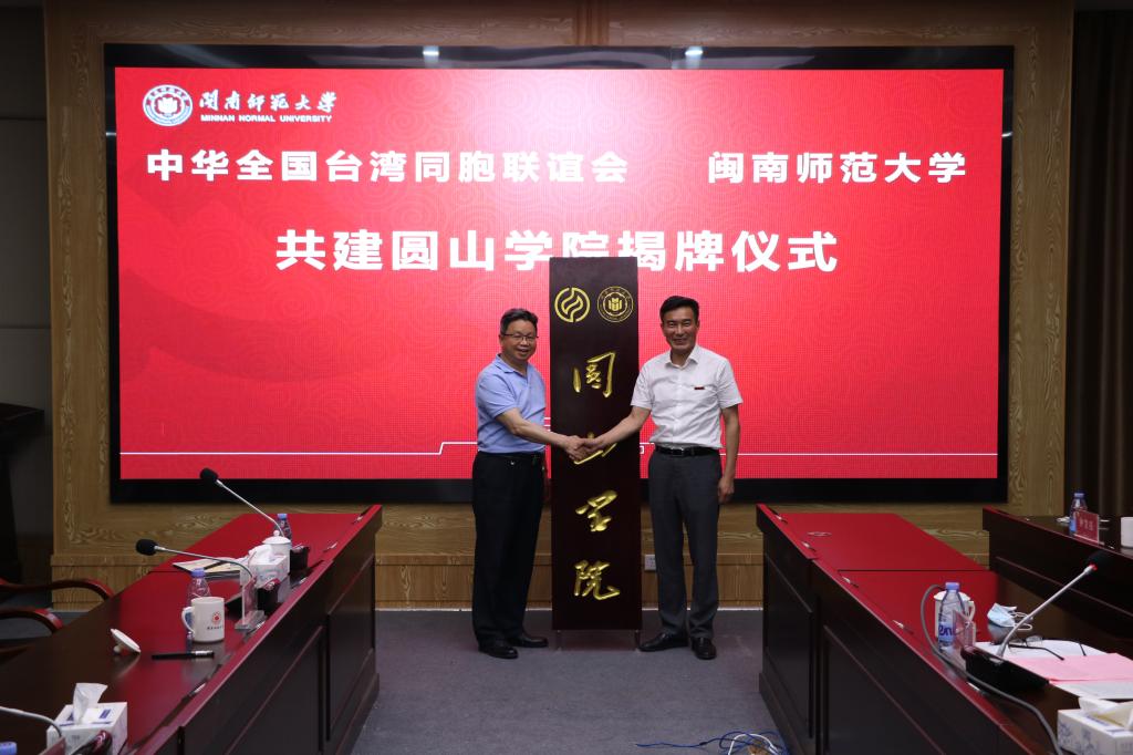 全国政协委员、全国台联副会长杨毅周和校党委书记吴彬镪共同为圆山学院揭牌