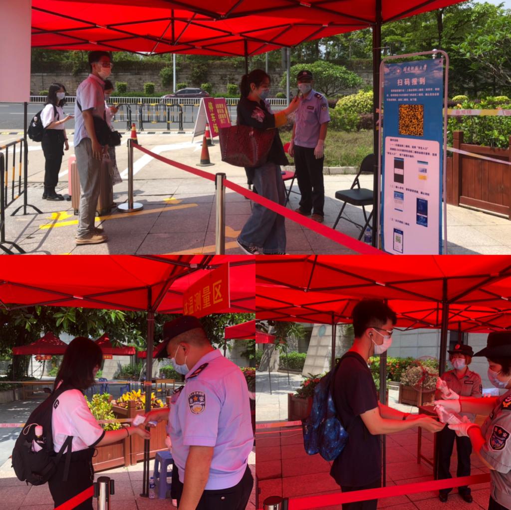 5月25日,登录入口迎来了首批非中高风险地区的三个学院800多名毕业生返校。返校当天,学校开放东门、南门、西门三个校门,各个校门均增设遮阳引导道路帐篷,设“通行证校验区”“体温测量区”“消毒区”“临时观察区”“休息区”等五个区域。返校学生在工作人员的引导下,有序排队接受身份核验、查验“返校通行证”、体温检测、手部消毒,整个过程有条不紊、秩序井然。