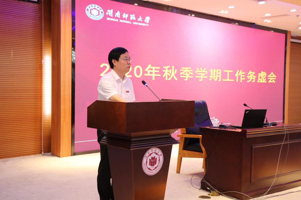 校长李顺兴作题为《善创机遇开新局 担当实干勇崛起》的新学期工作部署。李顺兴从申博指标、教学成果、学科专业、研究生规模、科研、师资、硬件和民生等方面回顾了近三年来学校办学取得的成绩,从“善抓机遇勇开新局需要胆识、深化改革聚力攻坚重在担当、坚定信心推动发展强调有为”三个方面阐述了学校当前和今后改革发展的思路。他强调,“十四五”规划开局很关键,要一手抓防控,一手促发展,要发挥“敢拼会赢”的精神,鼓起“越是艰险越向前”的拼搏斗志,增强信心、坚定信念,千方百计完成申博这个历史重任;要深入分析办学发展面临的新形势,深刻剖析学校不足,坚持改革发展是第一要务,不断推动学校治理体系和治理能力现代化建设,不断加快“六有”新闽南师大建设。