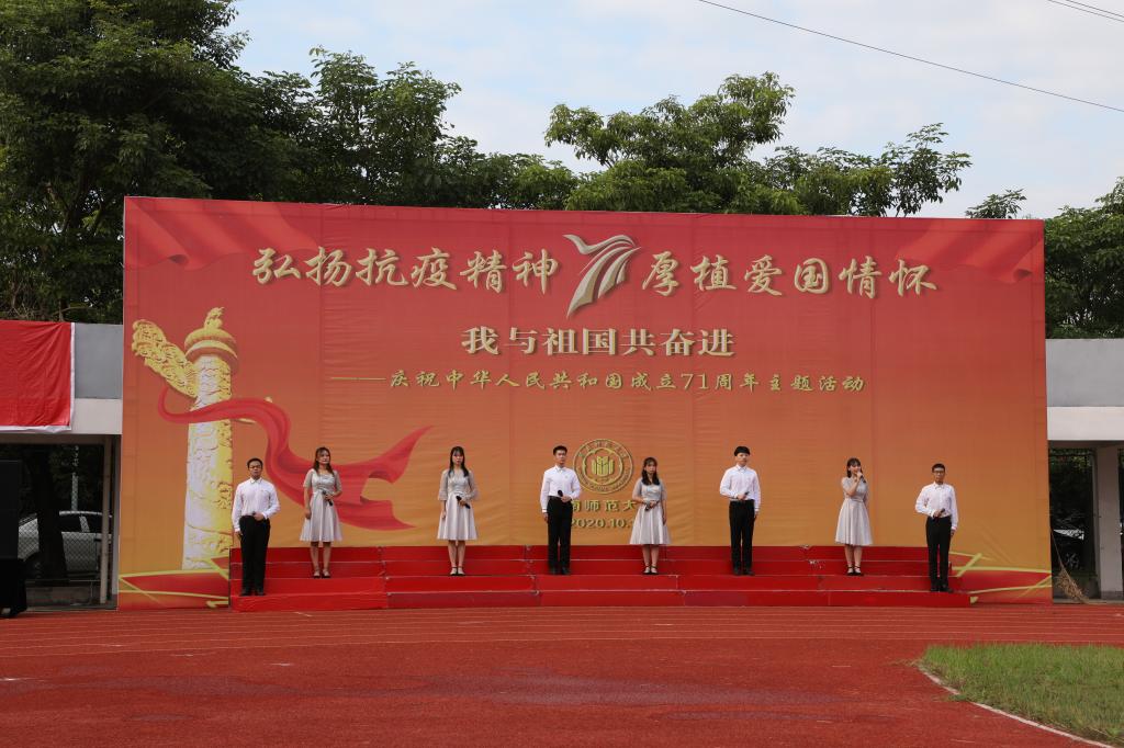 随后,校大学生艺术团朗诵队带来配乐诗朗诵《我爱你,中国》。最后,全场师生合唱《歌唱祖国》,共同祝福伟大的祖国。