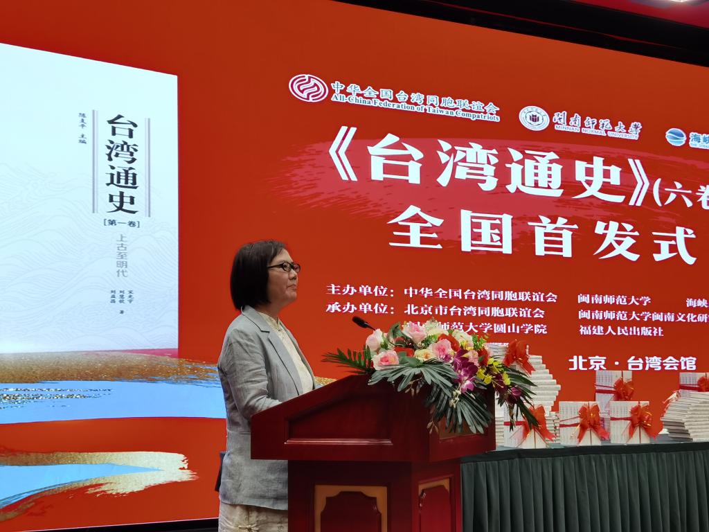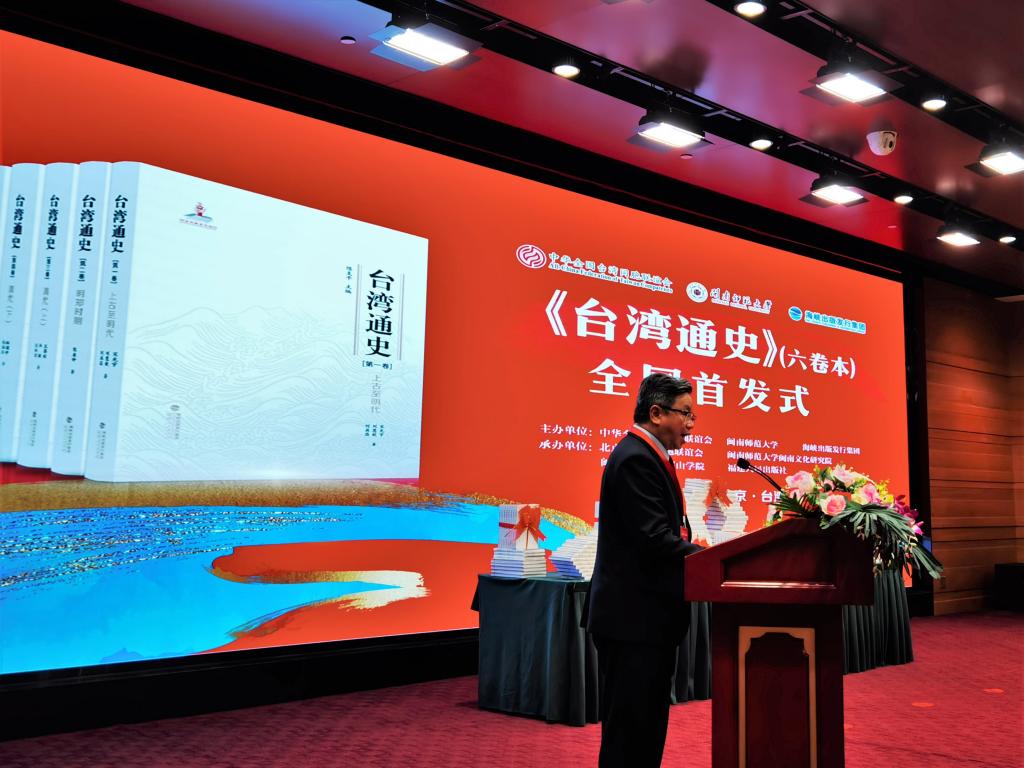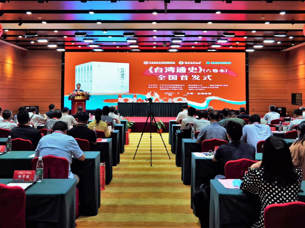 7月17日,由中华全国台湾同胞联谊会、MK体育/mksport体育·官方网站、海峡出版发行集团主办,北京市台湾同胞联谊会、MK体育/mksport体育·官方网站闽南文化研究院、MK体育/mksport体育·官方网站圆山学院、福建人民出版社共同承办的《台湾通史》(六卷本)全国首发式在北京台湾会馆举行。国台办、教育部、文化和旅游部、民革中央、台盟中央、海峡两岸关系协会、中国社会科学院、全国台湾研究会、北京大学、清华大学、中国人民大学、北京工商大学、北京联合大学、中国艺术研究院、中国明史学会等单位领导、专家学者,人民MK体育/mksport体育·官方网站、新华社、光明MK体育/mksport体育·官方网站、中央广播电视总台等20多家新闻媒体,海峡出版发行集团,MK体育/mksport体育·官方网站北京校友代表以及MK体育/mksport体育·官方网站有关部门领导和教师代表共100人参加首发式。首发式由MK体育/mksport体育·官方网站党委常委、副校长张龙海主持。
